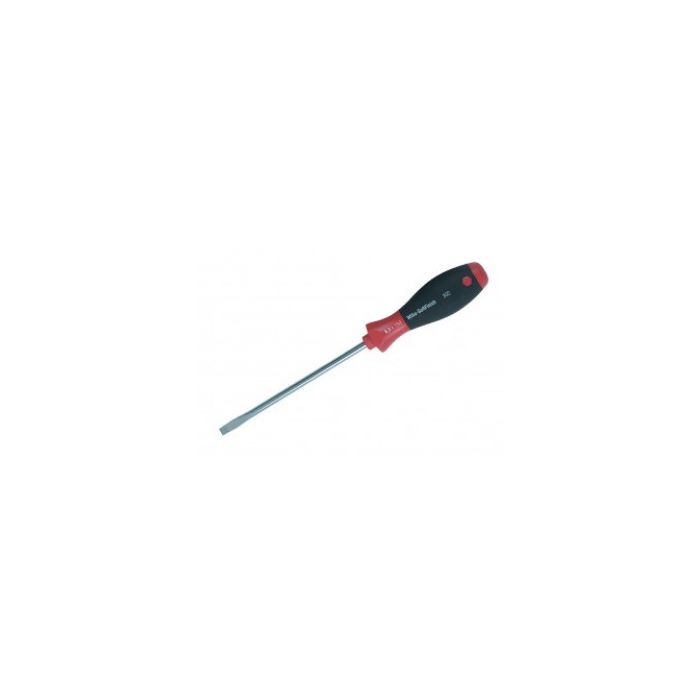 Wiha SoftFinish® Cushion Grip Slotted Screwdriver. 6.5mm x 100mm. 8.6/218mm OAL. Round blade, high alloy chrome-vanadium-molybdenum, hardened, hard chromed. Wiha chromtop tips. SoftFinish® handle, multi-component, cushion grip.